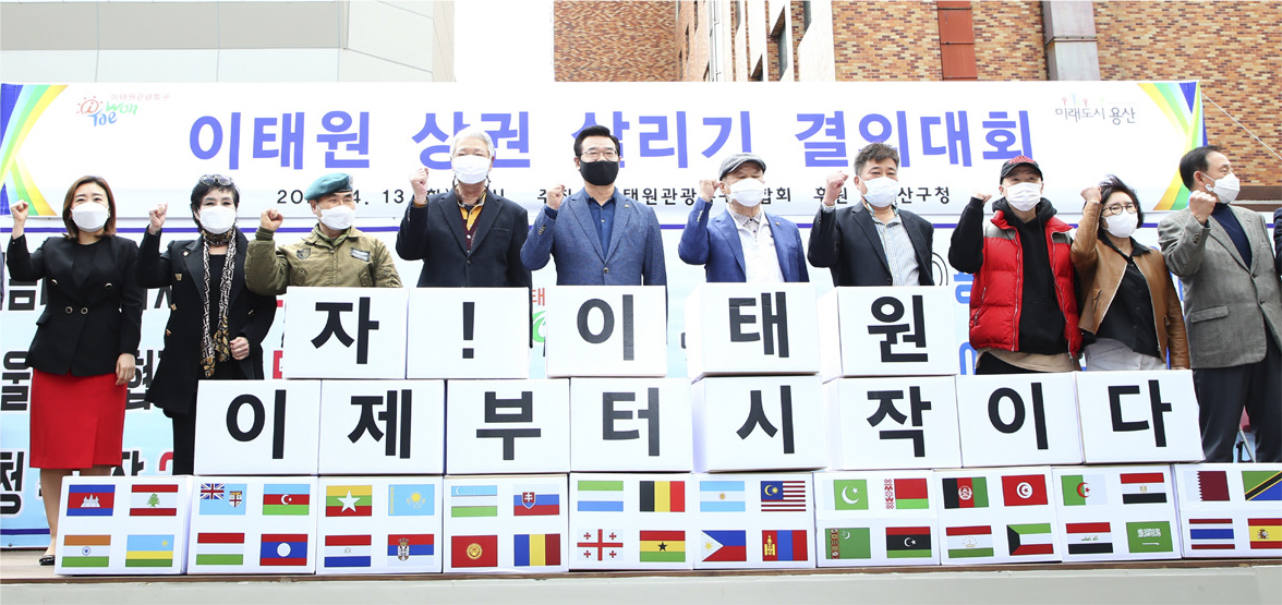 4월 13일 ‘이태원 상권 살리기 결의대회’를 가진 용산구는 ▲이태원 상권 활성화 추진단 운영 ▲소상공인 재난위기 극복 지원 ▲용산형 착한 임대인 지원 ▲공실 활용 ‘스타숍’ 프로젝트 ▲우리동네가게 아트테리어 ▲1부서 1경제살리기 등의 사업을 이어 간다.