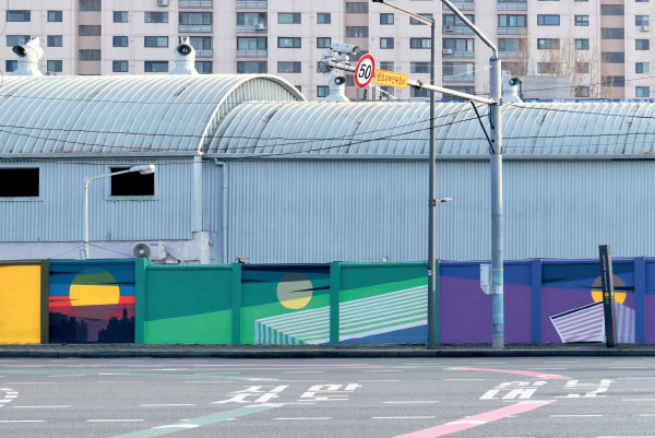 기피시설인 쓰레기 처리장이 자리 잡은 서빙고로 246. 최근 이곳의 길 위로 용산의 사계절이 화려한 색과 함께 펼쳐졌다. 쓰레기 처리장 담벼락이 공공미술의 캔버스가 된 것이다.