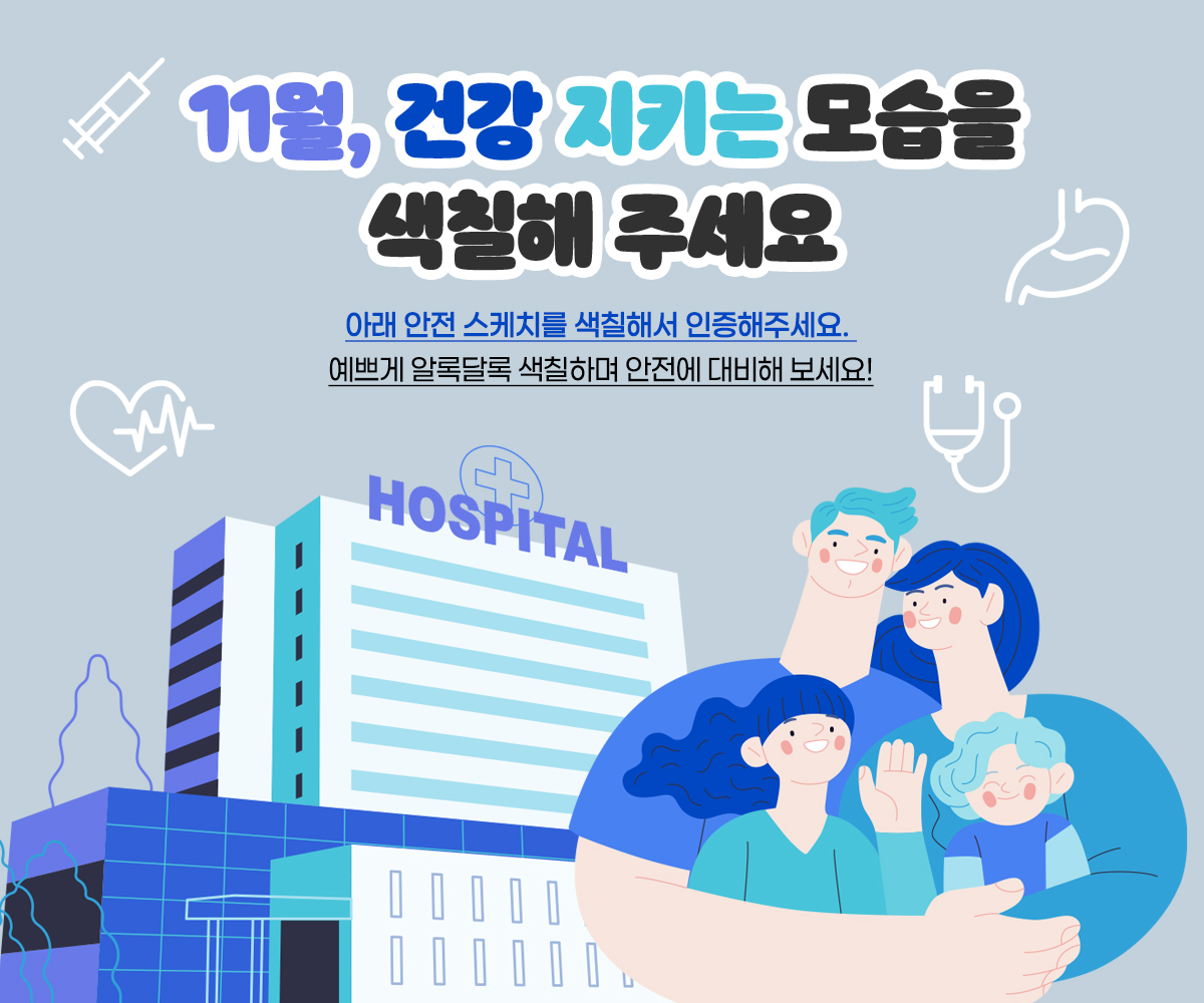 아래 안전 스케치를 정성껏 색칠한 후 이름, 연락처, 주소(용산구 ○○동까지만)와 함께 메일로 보내주시면