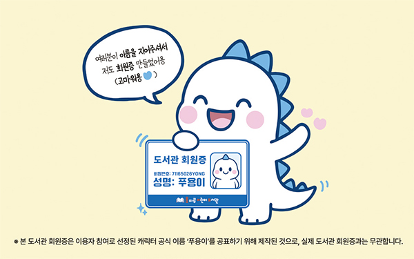 투표 결과, 총 참여자 690명 중 292표(오프라인 270표, 온라인 22표)를 얻은 ‘푸용이’가 1위를 차지하며 공식 캐릭터 이름으로 선정되었습니다. 이용자들이 직접 지어주고 뽑아준 이름인 만큼 ‘푸용이’를 도서관의 소중한 자산으로 적극 활용하겠습니다.
