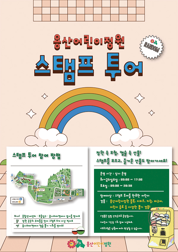 - 스탬프투어 미션을 따라 정원 곳곳을 탐험하며 스탬프를 모두 모으세요.