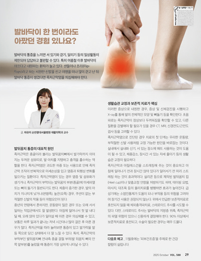 지식 듬뿍의 “발바닥이 한번이라도 아팠던 경험 있나요?” 칼럼에서 언급하는 통증의 증상과 부위가 딱 제 상황과 같아서 덕분에 정형외과에 들러 물리치료를 받고 왔습니다^^