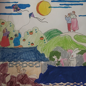 아이들과 숨은 그림 찾듯이 추석과 관련된 것들을 찾아가며 색칠했어요.