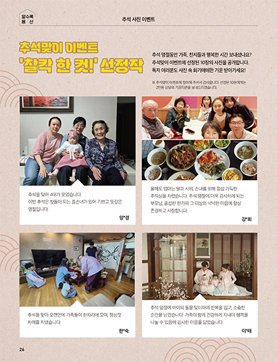 추석맞이 이벤트 찰칵 한 컷 선정작을 통해 이웃들의 삶을 직접 볼 수 있어서 좋았습니다.