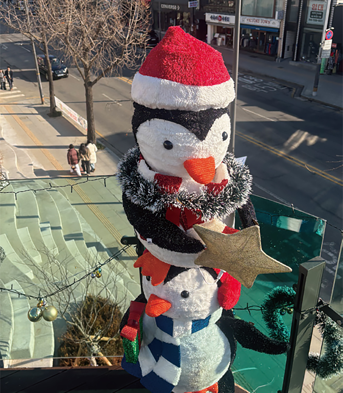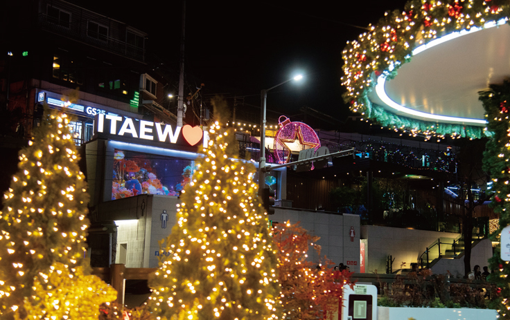 지하철 6호선 삼각지역과 녹사평역엔 ‘서울 아래숲길’이라는 청량한 공간이 있다. 연말에는 크리스마스를 맞아 두 역사의 서울 아래숲길 전 구간을 금빛 장식 공과 벨벳 리본 등으로 꾸미고, 겨울을 상징하는 빨간 포인세티아 화분을 곳곳에 배치해 한층 더 주목을 받았다.