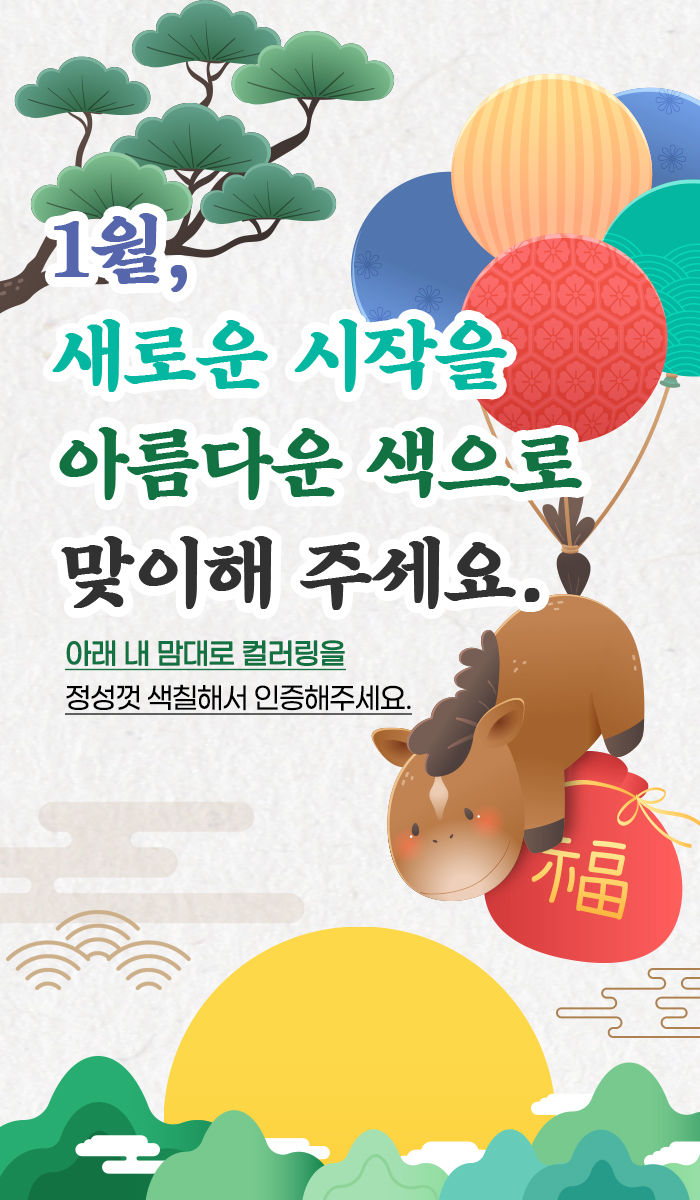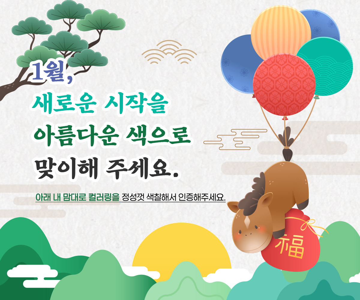 아래 내 맘대로 컬러링을 정성껏 색칠한 후 이름, 연락처, 주소(용산구 ○○동까지만)와 함께 메일로 보내주시면