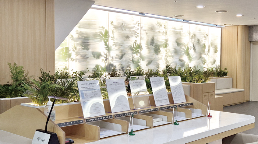 구청사 2층 로비와 실외 광장을 연계한 주민친화 힐링정원 조성
